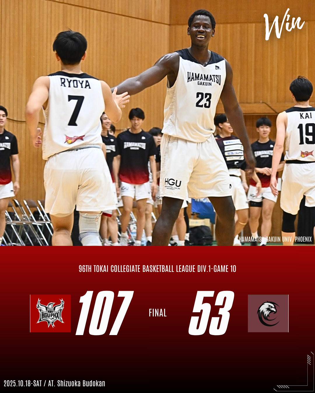 浜松学院大学 107 - 53 中部学院大学