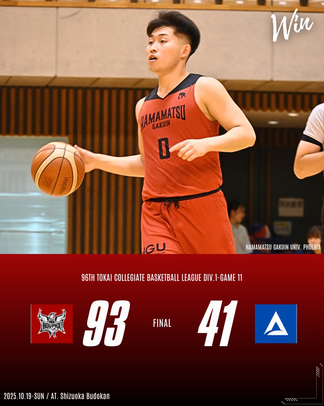 10/19(日) に行われた、「第96回東海学生バスケットボールリーグ戦 1部リーグ」第11節の試合結果をお知らせいたします。