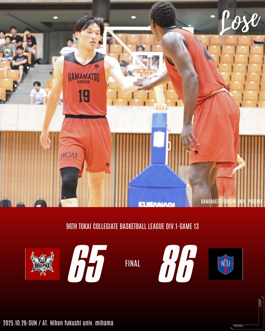 10/26(日) に行われた、「第96回東海学生バスケットボールリーグ戦 1部リーグ」第13節の試合結果をお知らせいたします。