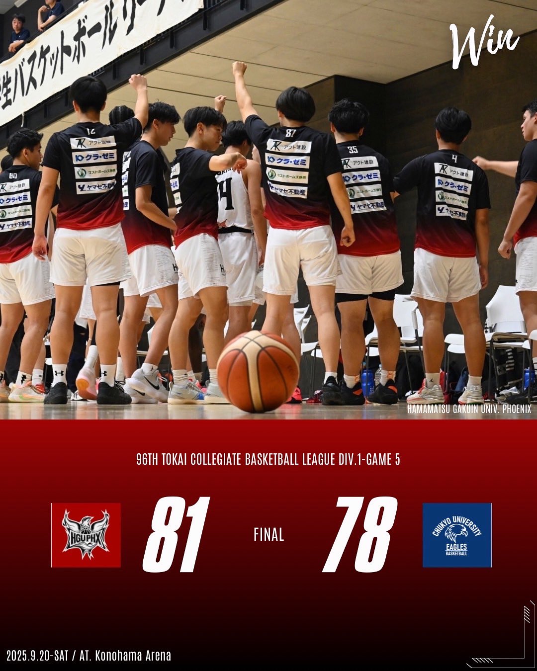 【試合結果】第96回東海学生バスケットボールリーグ戦 1部リーグ 第5節 浜学大 81 - 78 中京大