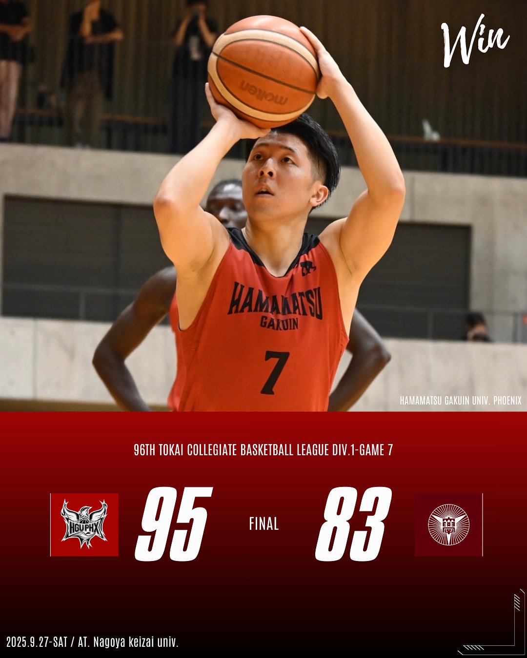 9/27(土) に行われた、「第96回東海学生バスケットボールリーグ戦 1部リーグ」第7節の試合結果をお知らせいたします。