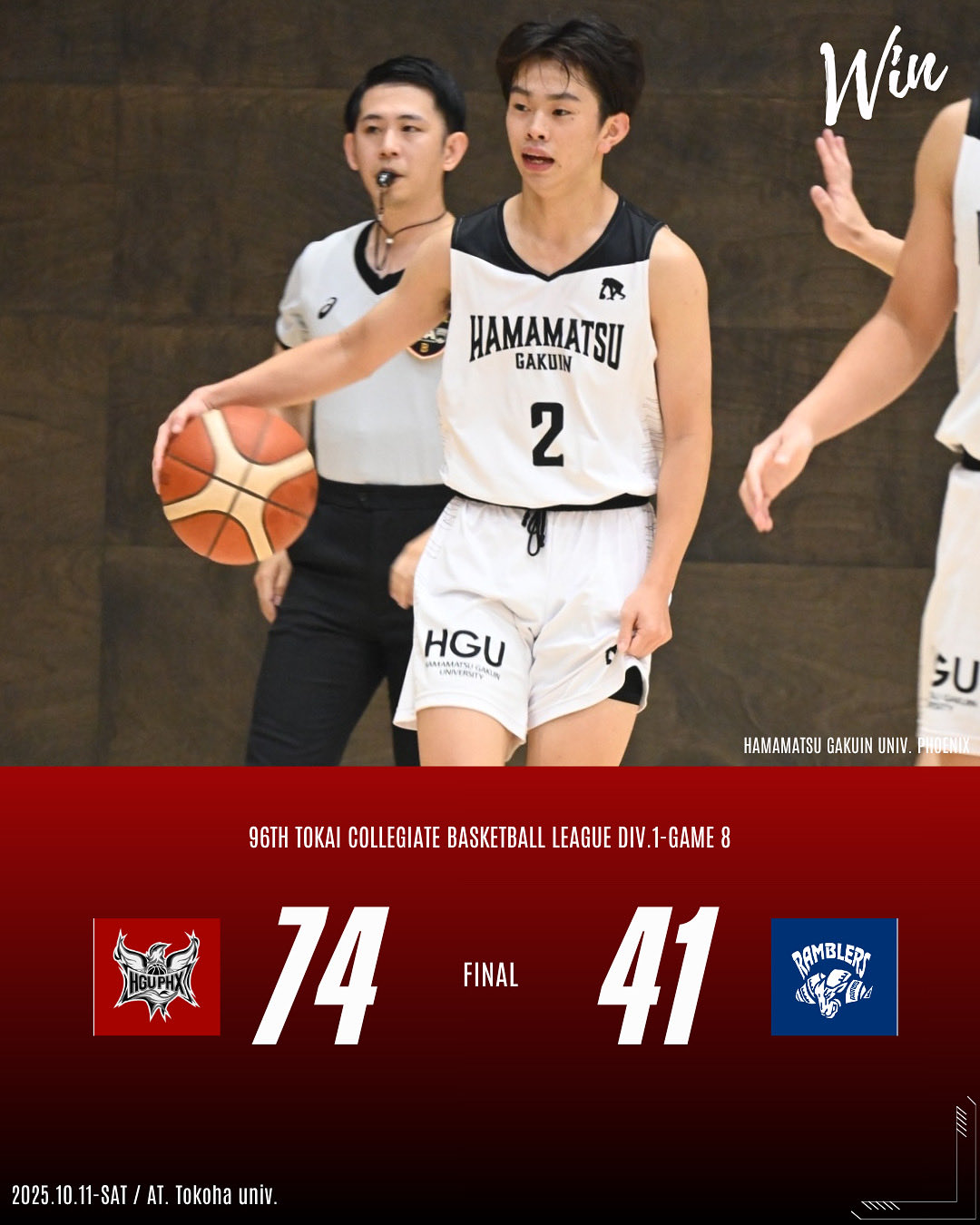 【試合結果】第96回東海学生バスケットボールリーグ戦 1部リーグ 第8節 浜学大 74 - 41 常葉大